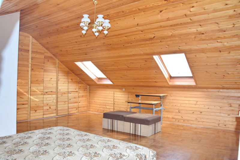 Az alsó szinten helyezkedik a kertkapcsolatos, teljesen gépesített konyha étkezővel.